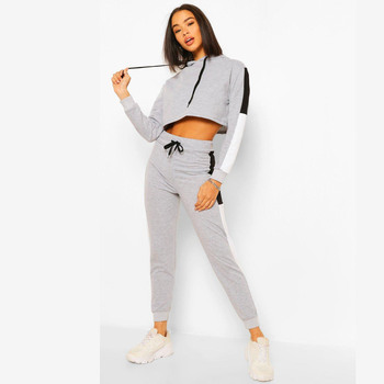 Oemワークアウトグレージョガースーツ綿100% トラックスーツジムウェア女性トラックスーツセットレディースジョガー2ピースフィットネス服